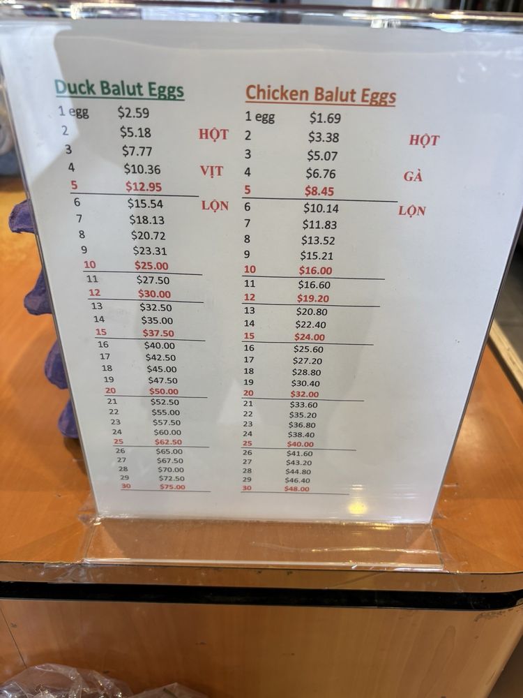 Welcome to Long An Eggs, a hidden gem nestled in Westminster, California, celebrated for its authentic Vietnamese cuisine, particularly its unique egg offerings. This quaint establishment specializes in balut, a popular Southeast Asian delicacy, available in various stages of maturation, accommodating every preference from younger to older eggs. What truly stands out is the attentive service; the staff are not only welcoming, but they also provide valuable tips on egg selection and cooking times, ensuring a delightful experience.